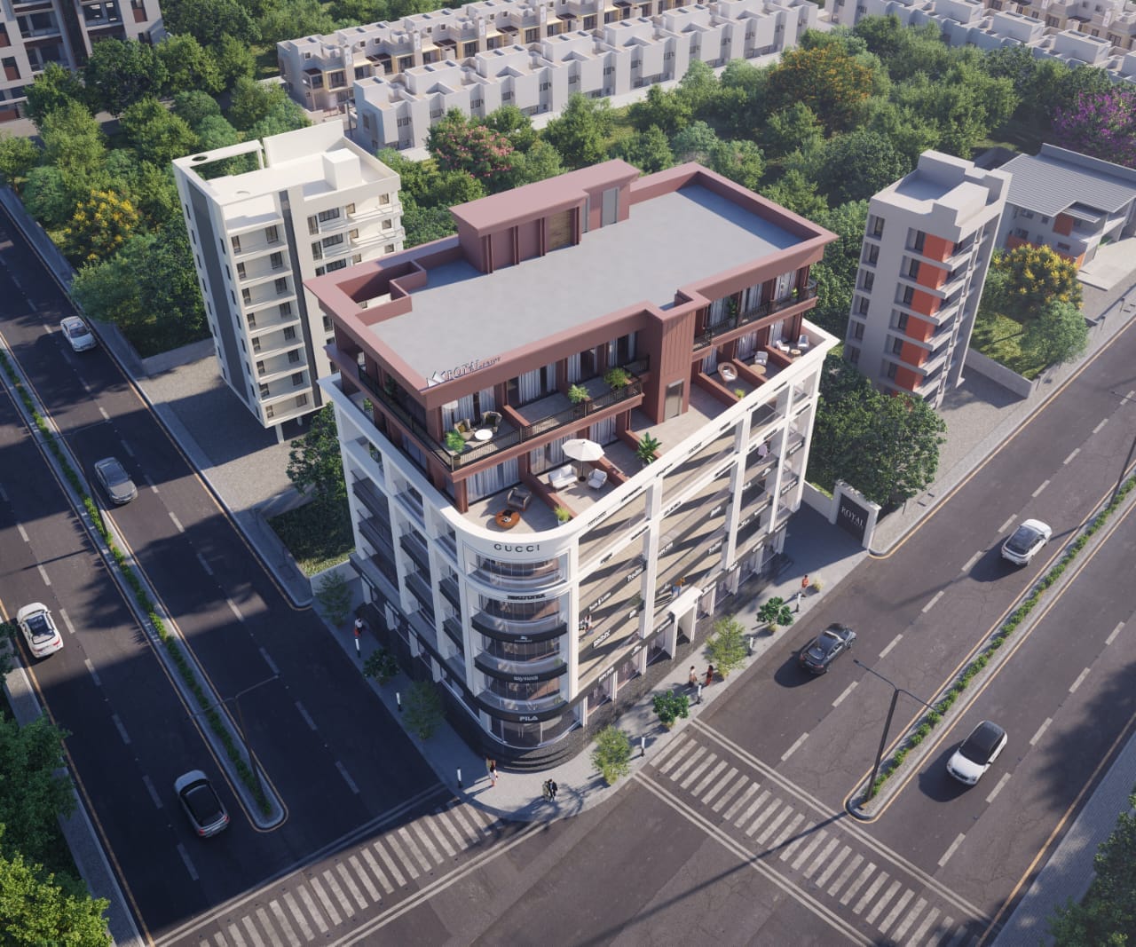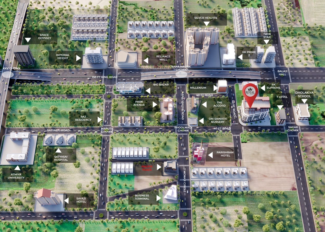 Royal Points is a premium commercial project located on Nanamava Main Road, offering thoughtfully designed shops, showrooms, and office spaces ideal for businesses seeking visibility and growth. Positioned in one of the fast-developing commercial zones of Rajkot, this project combines strategic location with modern infrastructure to create the perfect business destination.