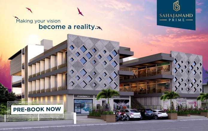 Sahajanand Prime is a modern commercial complex strategically located at Shapar, Rajkot, designed to meet the growing business and investment needs of the region. The project offers a well-planned mix of retail shops and commercial office spaces, making it suitable for showrooms, retail outlets, offices, and service-based businesses.